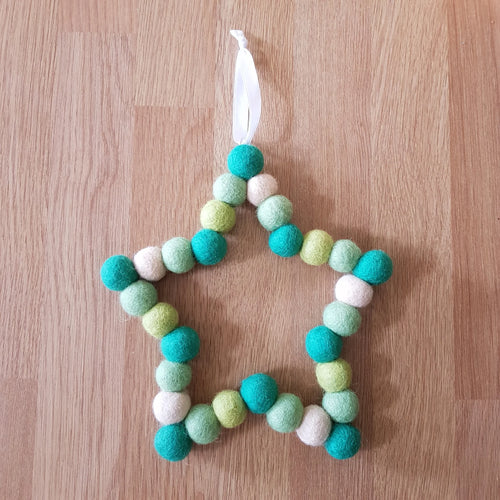 Shades Of Green Star - Felt Ball Hanging Decoration - Useless Buttons