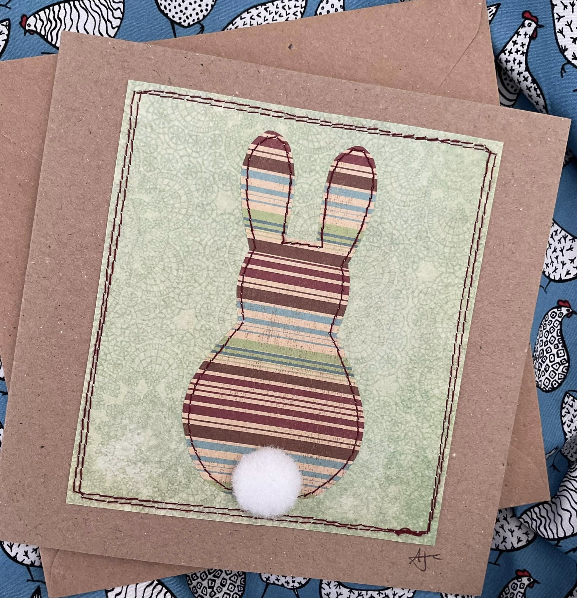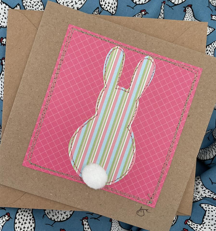 Easter Bunny Greetings Card - Fabric Collage Card - Lots of colours - Quirky Threads Art