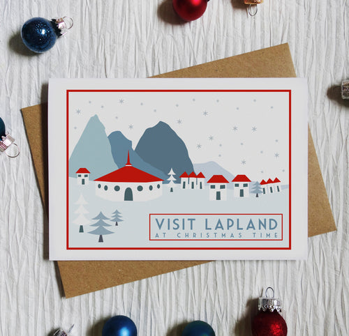 Visit Lapland Christmas Card - Sweetpea and Rascal Travel poster inspired card - Christmas greetings