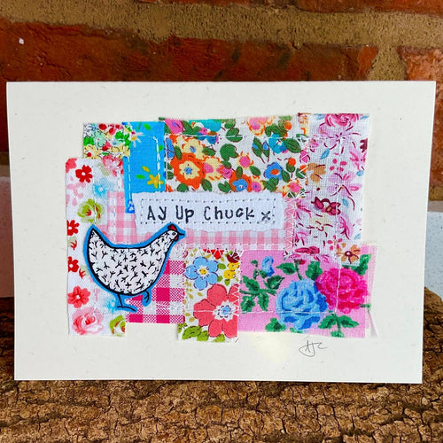 Greetings Card - Ay Up Chuck - Fabric Collage Card - Quirky Threads Art