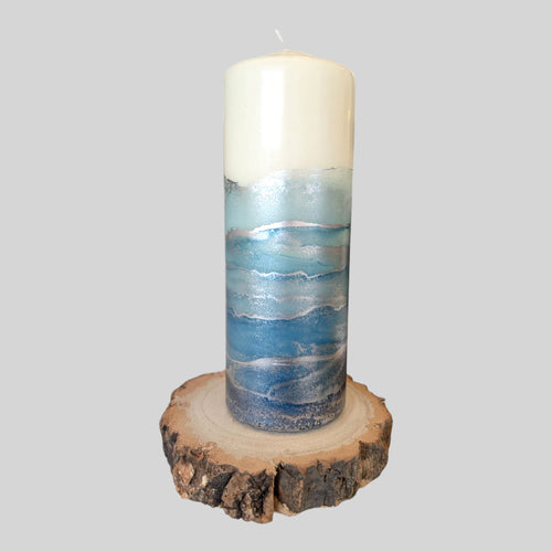 Candle - Blue - Nichol Stokes Designs - Alcohol Ink Artwork