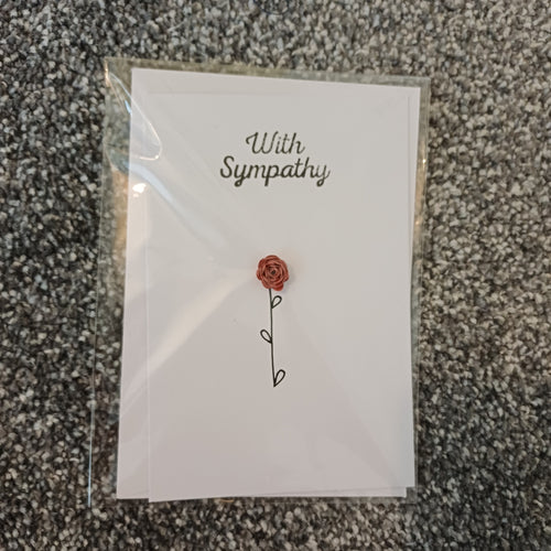 Greetings Card - With Sympathy - Hand Rolled Paper Rose - Light Red - Flowers by Laurzy