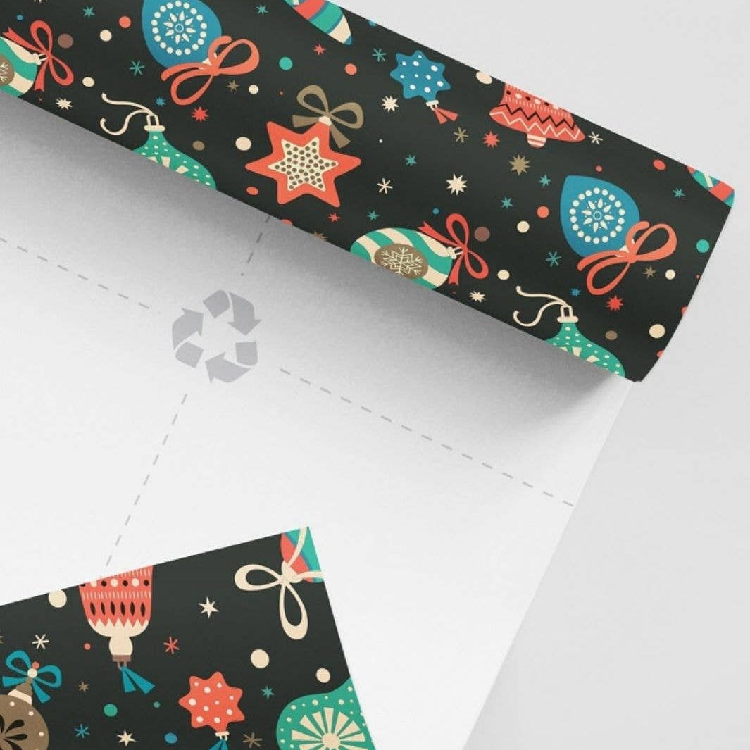With a galactic feel, the Curlicue Bauble Noire print catches your eye with its stunning, ornamental print. The ideal decoration for gifts given at Christmas.