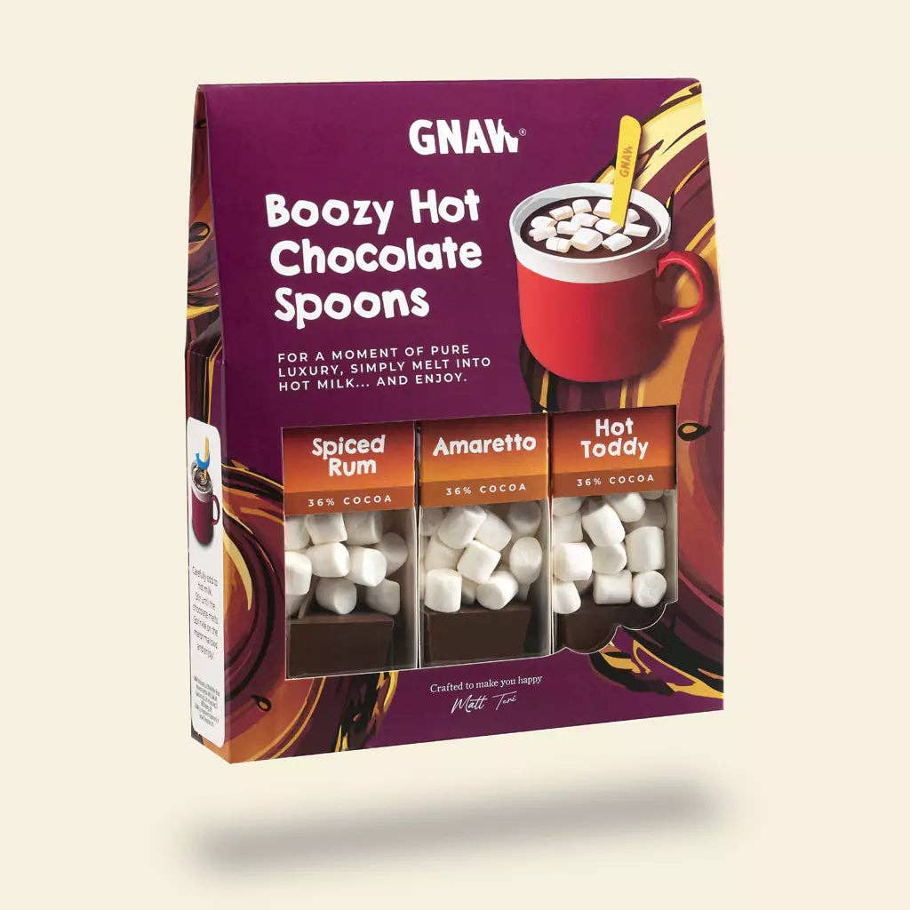 This unique alcohol-inspired Boozy Hot Chocolate Stirrer Gift Set is nothing but warm and cosy hot chocolate bliss! Simply fill your favourite mug with hot milk, stir any of the three hot chocolate spoons included in the gift set and watch as the gooey chocolate melts off the spoon to make a perfect hot chocolate. Top it off with fluffy marshmallows and enjoy the moment with a real hot chocolate experience crafted from the finest 36% Colombian cocoa. Happiness in a mug!