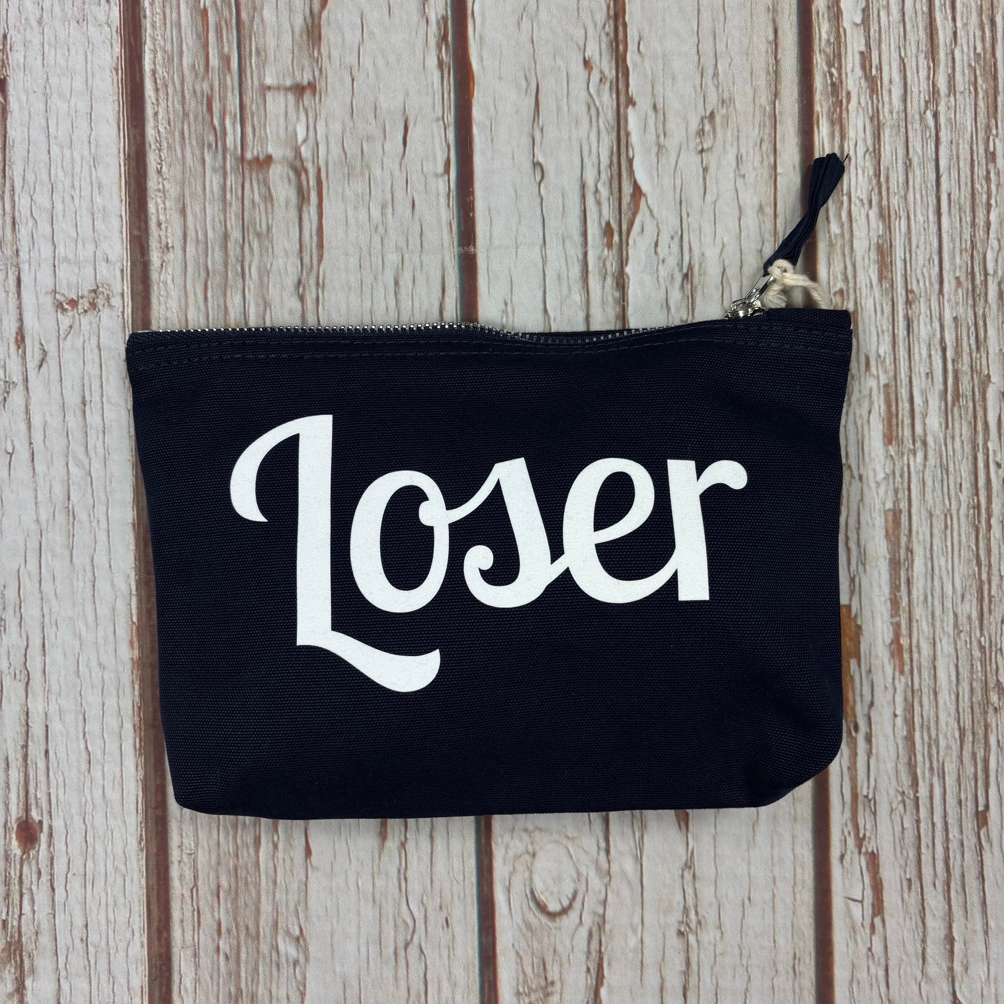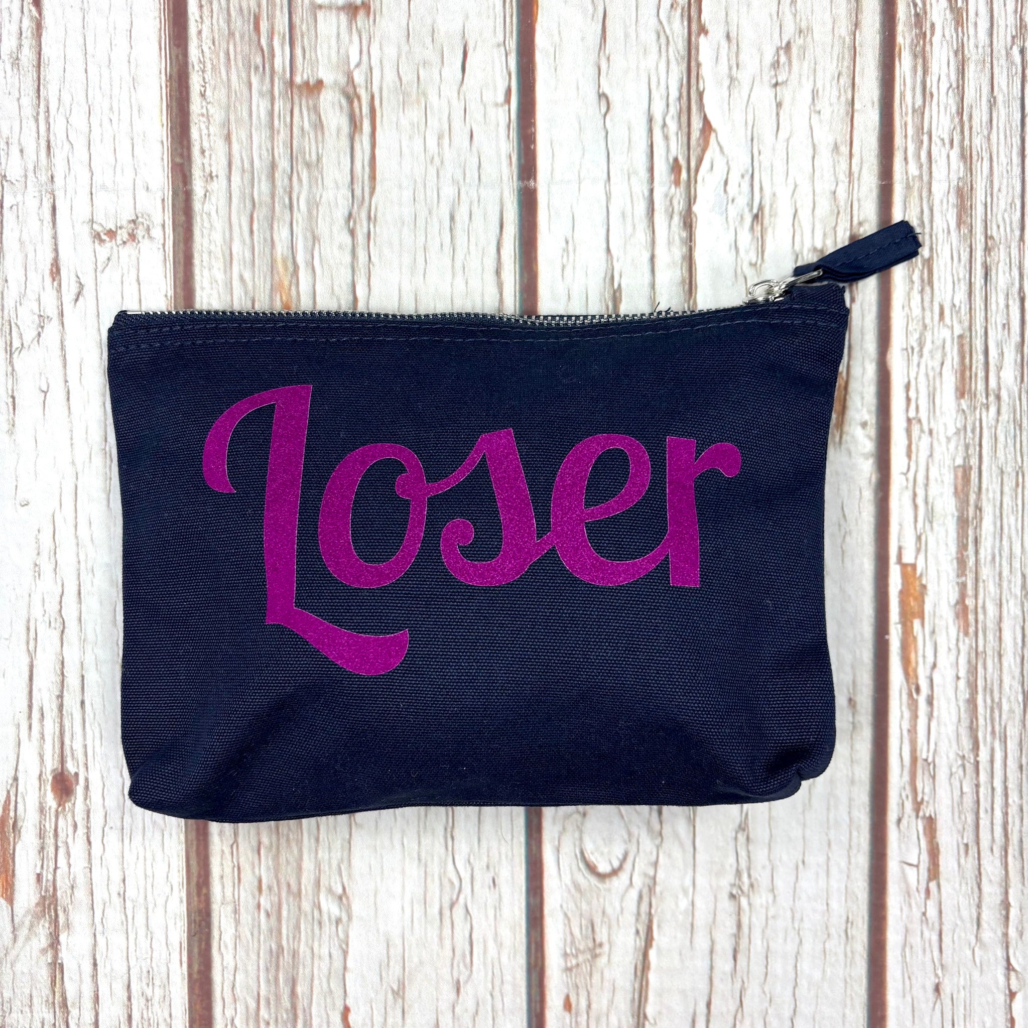 This one is a Loser Pouch in Navy Cotton with purple or white flock.
