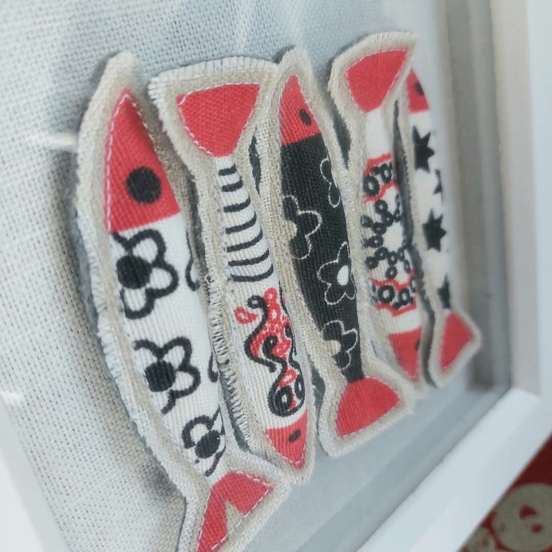 Fabric Fish Frame - Packed In - Fabric Artwork - Quirky Threads Art