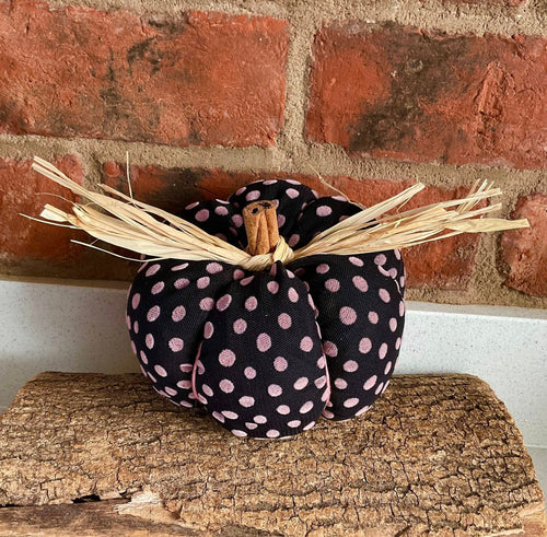 Pumpkin - Fabric Pumpkin Decoration - Black and Pink Spot - Quirky Threads Art