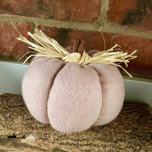 Pumpkin - Fabric Pumpkin Decoration - Pale Pink Vegan Wool - Quirky Threads Art