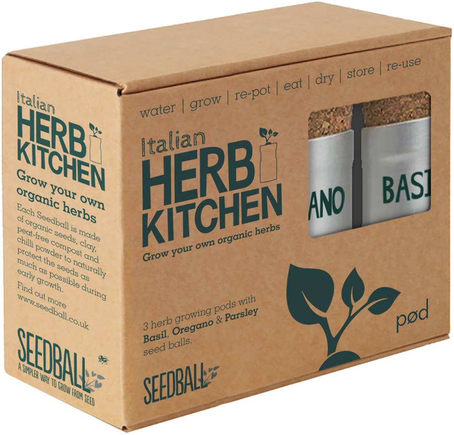 Created in collaboration with their friends at POD, this Seedball herb grow kit is a brilliant and easy way to start growing your own parsley, basil and oregano from seed. Each pod contains 2 peat-free coir discs and one seedball with 5-10 organic herb seeds.