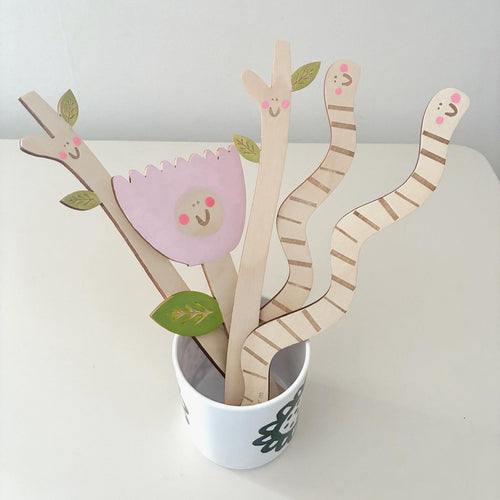 Handpainted Wooden Bookmark - Bookworm / Twig / Flower - Squirrelbandit