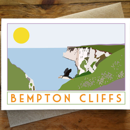 Bempton Cliffs greetings card - tourism poster inspired - Sweetpea and Rascal - Yorkshire scenes