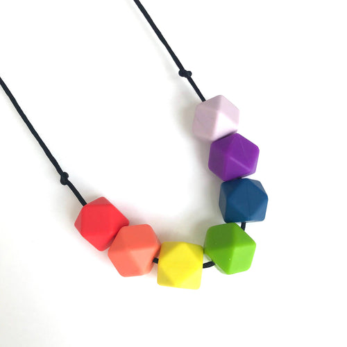 • Teething Necklace - Rainbow Hex - Geometric Silicon Bead Teething Jewellery - Mama Knows