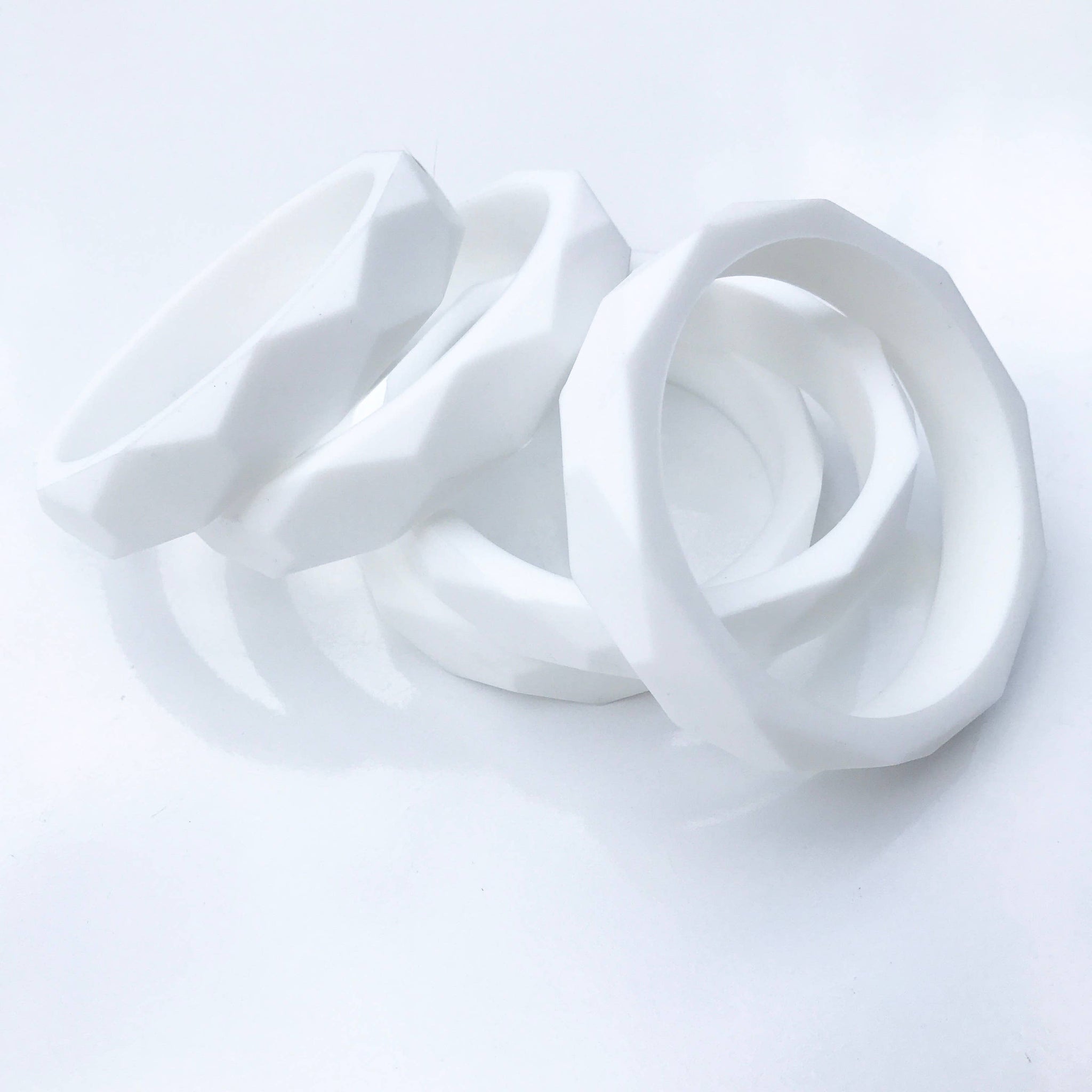 Stylish geometric shape bangle made from 100% food grade silicone that doubles as a teether in a choice of colors!