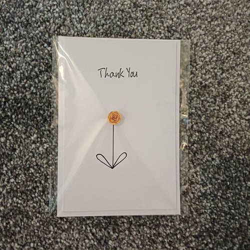 Greetings Card - Thank You - Single Rolled Paper Rose Card - Yellow - Flowers by Laurzy