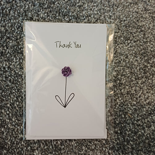Greetings Card - Thank You - Single Rolled Paper Rose Card - Purple - Flowers by Laurzy